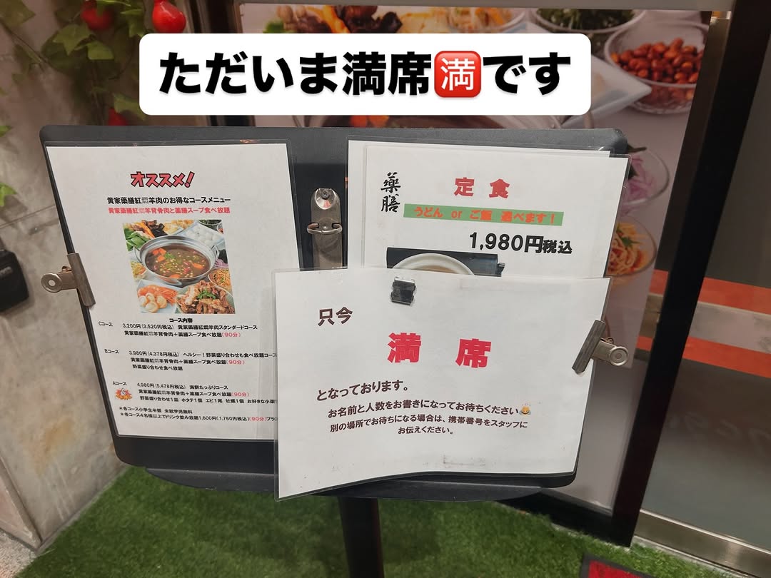 に投稿されました 12522031 XIAO YUXIN Trustindex は、レビューの元のソースが Google であることを確認します。 非常之好吃、专门从京都跑来吃,吃完身上很暖和 に投稿されました 浅田昌代 Trustindex は、レビューの元のソースが Google であることを確認します。 羊のお肉を初めて食べましたがとても美味しかったです。薬膳スープも、体の中から綺麗に元気になってくる感じです オーナーのお話も楽しく、健康ワンポイントを教えてくれますよ。 に投稿されました 森美智代 Trustindex は、レビューの元のソースが Google であることを確認します。 スープも羊肉も薬膳でとっても美味しく、これでもか!というくらい食べました。90分食べ放題はとってもお得です。2階を貸切りにしてくれて、仲間とワイワイ楽しめました! に投稿されました 上嶌亜紀 Trustindex は、レビューの元のソースが Google であることを確認します。 すごく居心地良く過ごせました に投稿されました 木村ゆり Trustindex は、レビューの元のソースが Google であることを確認します。 薬膳スープがとてもおいしい。 羊肉はやわらかくてほろほろ、クセもなくパクパク。 他のお料理もどれも美味しかったです。 定期的に食べたい&飲みたいと思いました! ありがとうございました。 に投稿されました しゅーちゃん Trustindex は、レビューの元のソースが Google であることを確認します。 ここの羊肉は絶品です。 全く臭みがなく、骨付きでホロホロと崩れるくらいやわらかくて美味しく、いくらでも食べられます。 お鍋のスープも味わったことのない美味しさでした! に投稿されました 駄田井一孝 Trustindex は、レビューの元のソースが Google であることを確認します。 忘年会で利用しました。羊のお肉もスープもお酒も美味しかったです。また利用させてもらいます! に投稿されました 岩崎靖子 Trustindex は、レビューの元のソースが Google であることを確認します。 薬膳のスープが体に沁みました。そしてオーナーの人柄が素晴らしい!もともと中医学を学んだ方なので、本当に体によいものをご存知だからこその、お料理とかんじました。一つ一つの質が高いです。美味しい!美味しく体のメンテができた感じがします。また来たい!